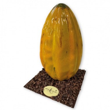 Chocolate negro al 60%y chocolate blanco, pintado con técnica de aerógrafo con color alimentario.